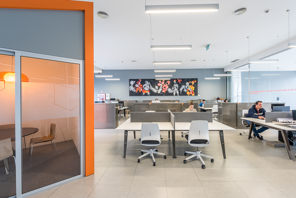 The GDI Hub: business center and coworking space in Oeiras. It offers: offices, coworking spaces, an auditorium, meeting rooms, and event spaces.
